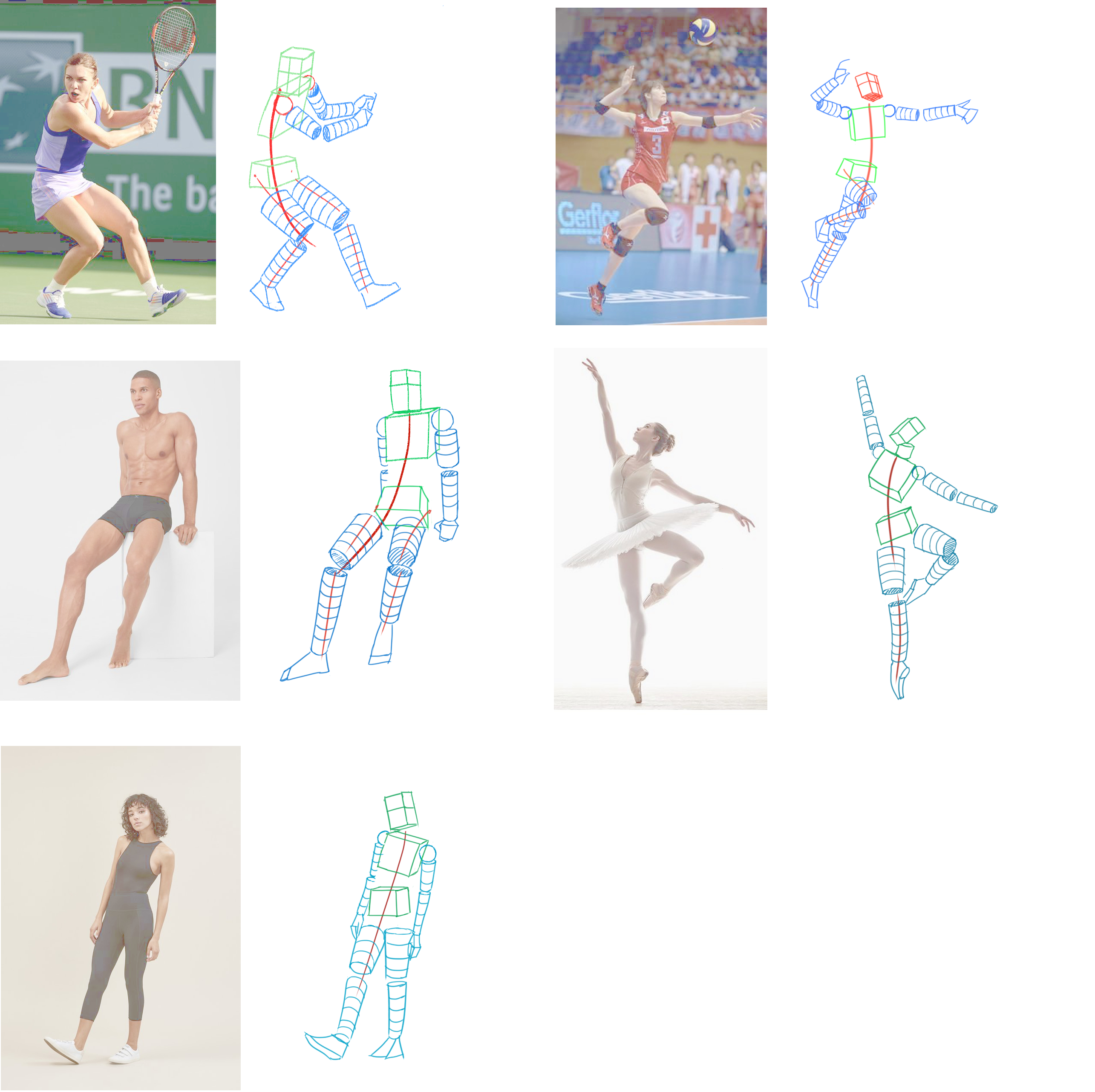 포즈가 바뀌었을때 인체를 입체적으로 인식하지 못하기 때문에 이를 보다 이해하기 쉬운 단순한 도형으로 표현하여 입체감을 익히는 것입니다.