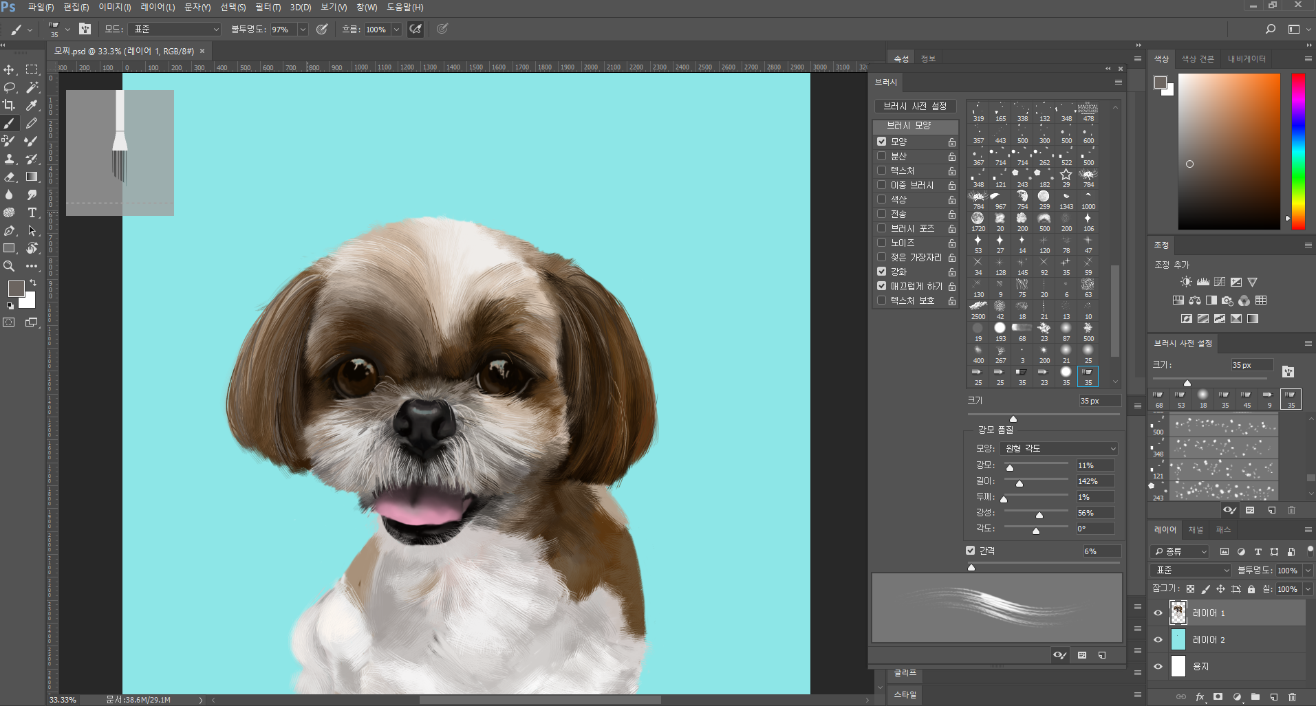 하지만 제가 포토샵을 잘 못 써서, 털 표현 브러쉬만 포토샵에서 사용하고 세부 터칭은 다시 클립 스튜디오로 와서 했습니다. 포토샵 왜 이렇게 어렵지 ㅜㅜ